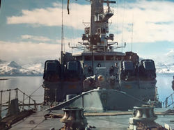 Soon after, Penelope undertook a Falklands patrol in the tense aftermath of the war, and did not return home until June 1983. The following year, she deployed to the South Atlantic again, patrolling and performing other duties in that region.